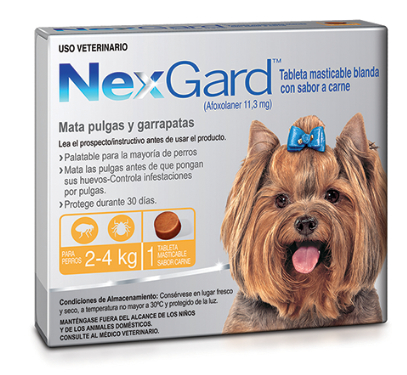 Nexgard s (de 2 a 4 kg). - 11,3 mg all, Es un antipulgas que protegerƔ a tu perro de contraer parƔsitos externos como pulgas y garrapatas cuyo efecto empezarƔ actuar despuƩs de 30 minutos de ser ingerida la tableta. tiene un sabroso sabor a carne, lo cual facilitarƔ el suministro, pues el perro lo comerƔ de forma voluntaria. es una forma fƔcil, segura y rƔpida de prevenir a nuestros perros y eliminar pulgas y garrapatas.